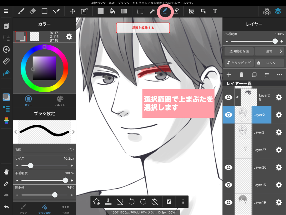 如果瞳孔一直很大,平衡性会不好,所以我也用放大/缩小工具调整了瞳孔的大小。