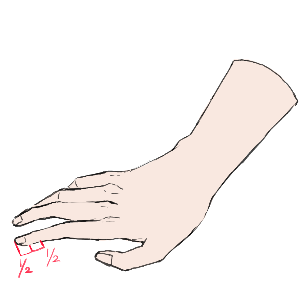 将指甲绘制成第三关节的1/2。