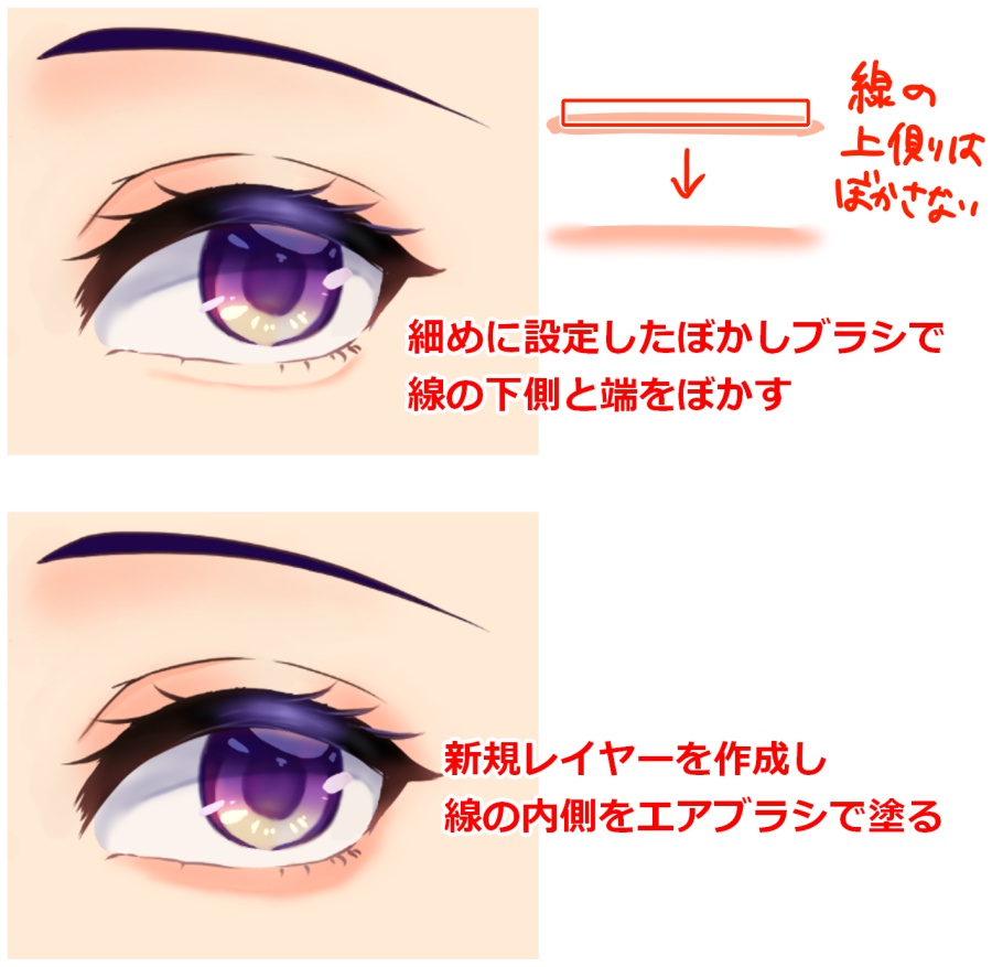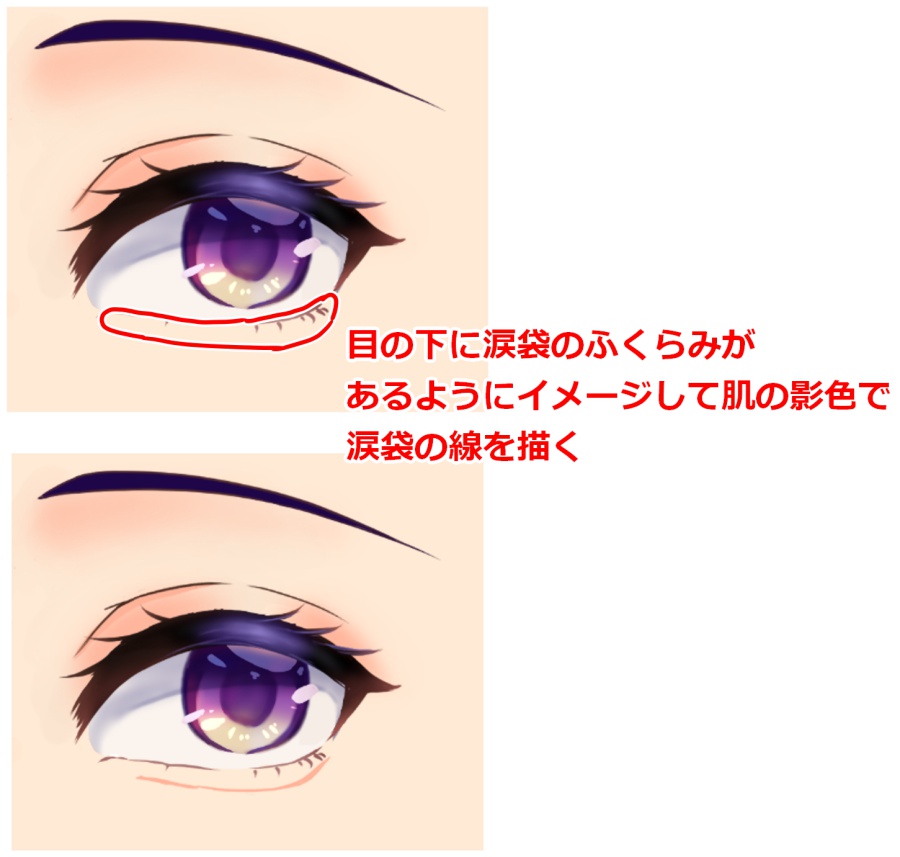 选择皮肤的阴影颜色并用细线绘制,同时注意泪袋的凸起。