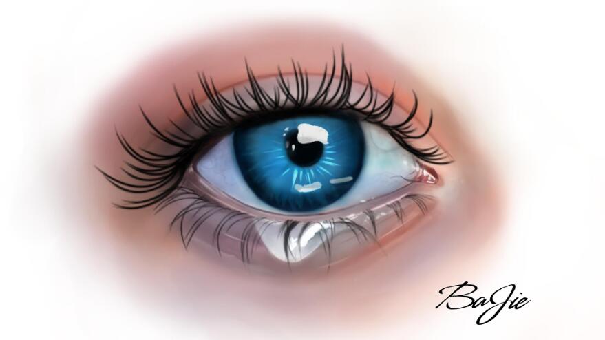 用厚涂画透明眼睛时,泪袋是必不可少的。