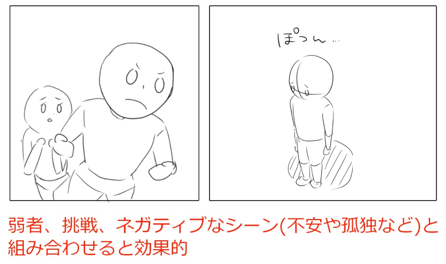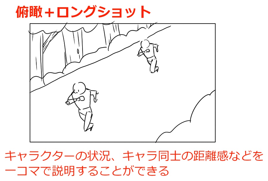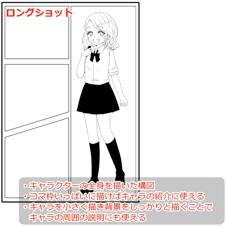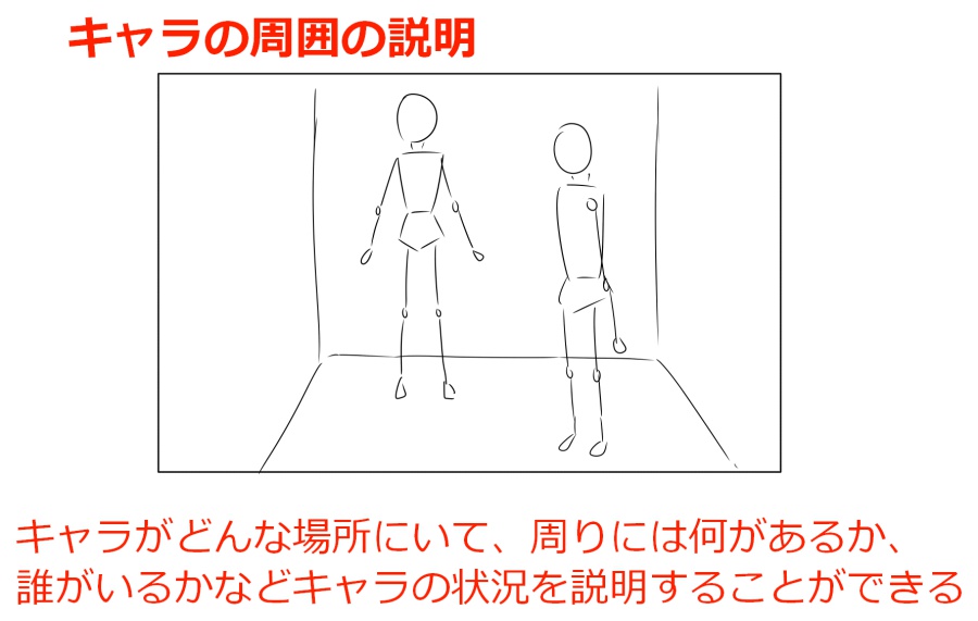 另外,如果将角色画得小,背景空间会增加,因此当您想解释角色周围的环境时,可以使用它。