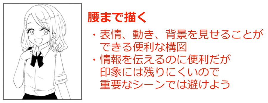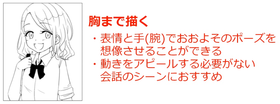 传递给读者的信息根据人物绘制的距离而变化,例如“到胸部”、“到腰部”和“到膝盖(大腿)”。