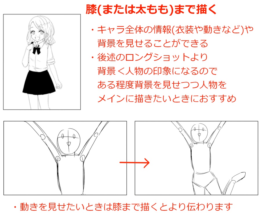直到膝盖(或大腿)的构图可以在显示整个角色信息的同时显示背景。