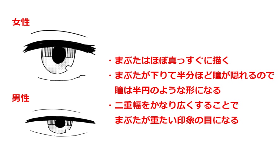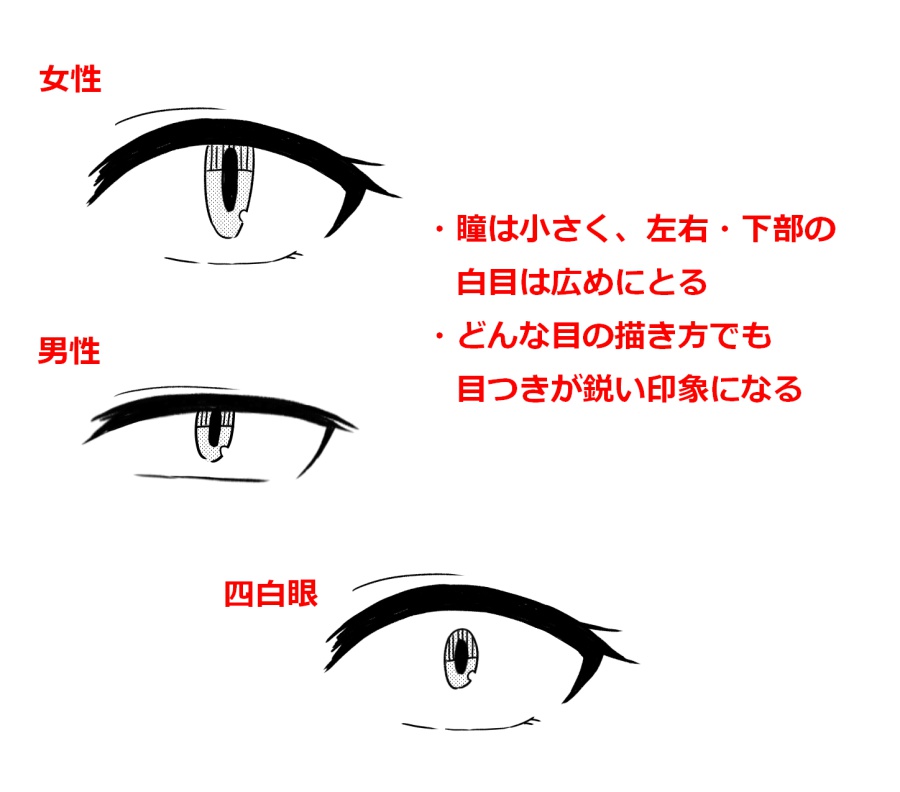 无论你怎么画上面解释的普通眼睛,垂眼,下垂的眼睛或jito的眼睛,你都会得到一个清晰的印象。