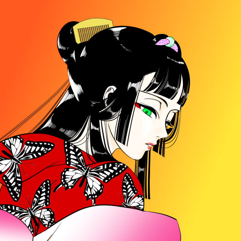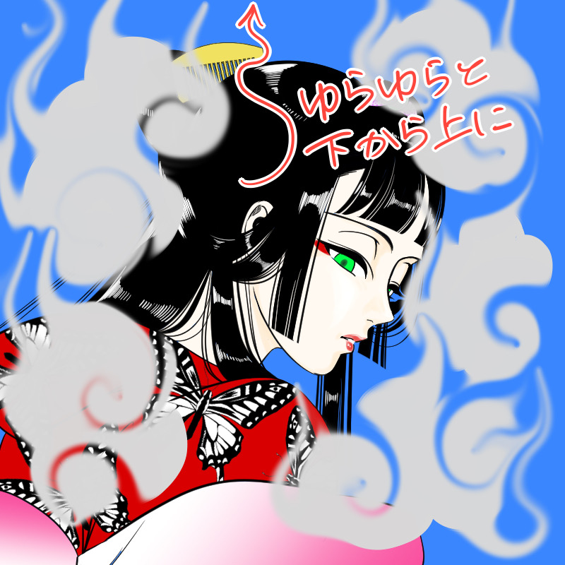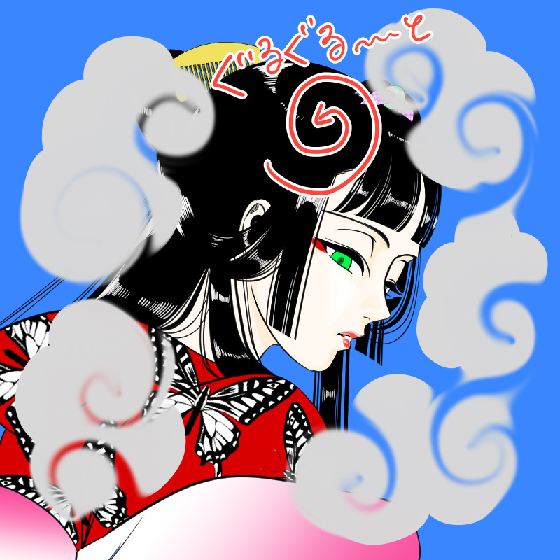 在这个插图中,为了更有和风的气氛,涂色是用水彩刷进行的。