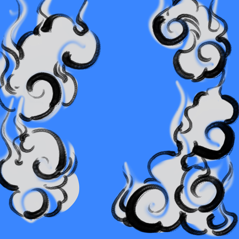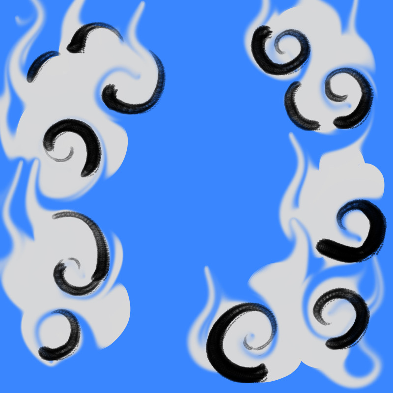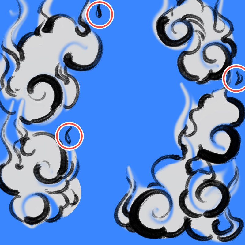 设定好后,准备新的图层,以云的漩涡部分和曲线的部分为中心画粗的线。