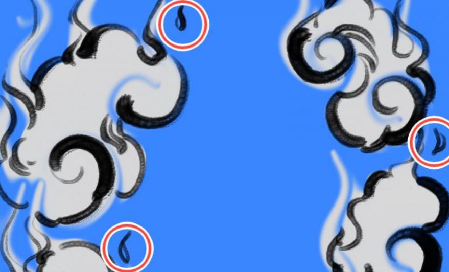 如图所示,像是从外面卷入几个地方一样,请在云上画上漩涡图案。