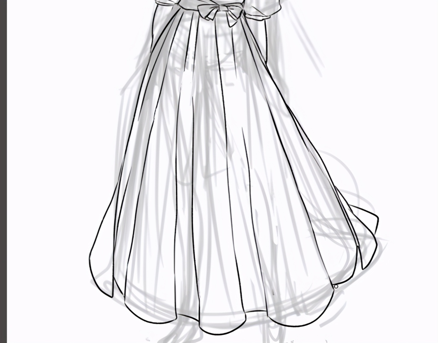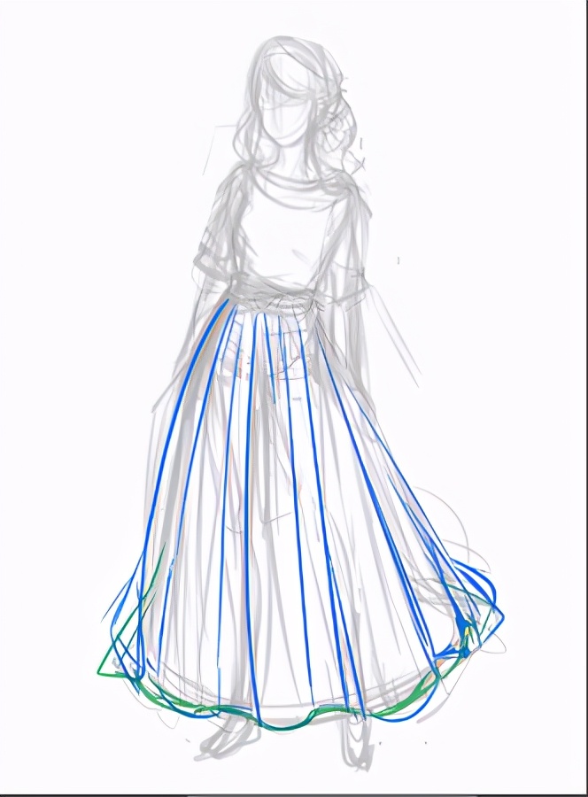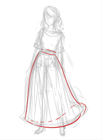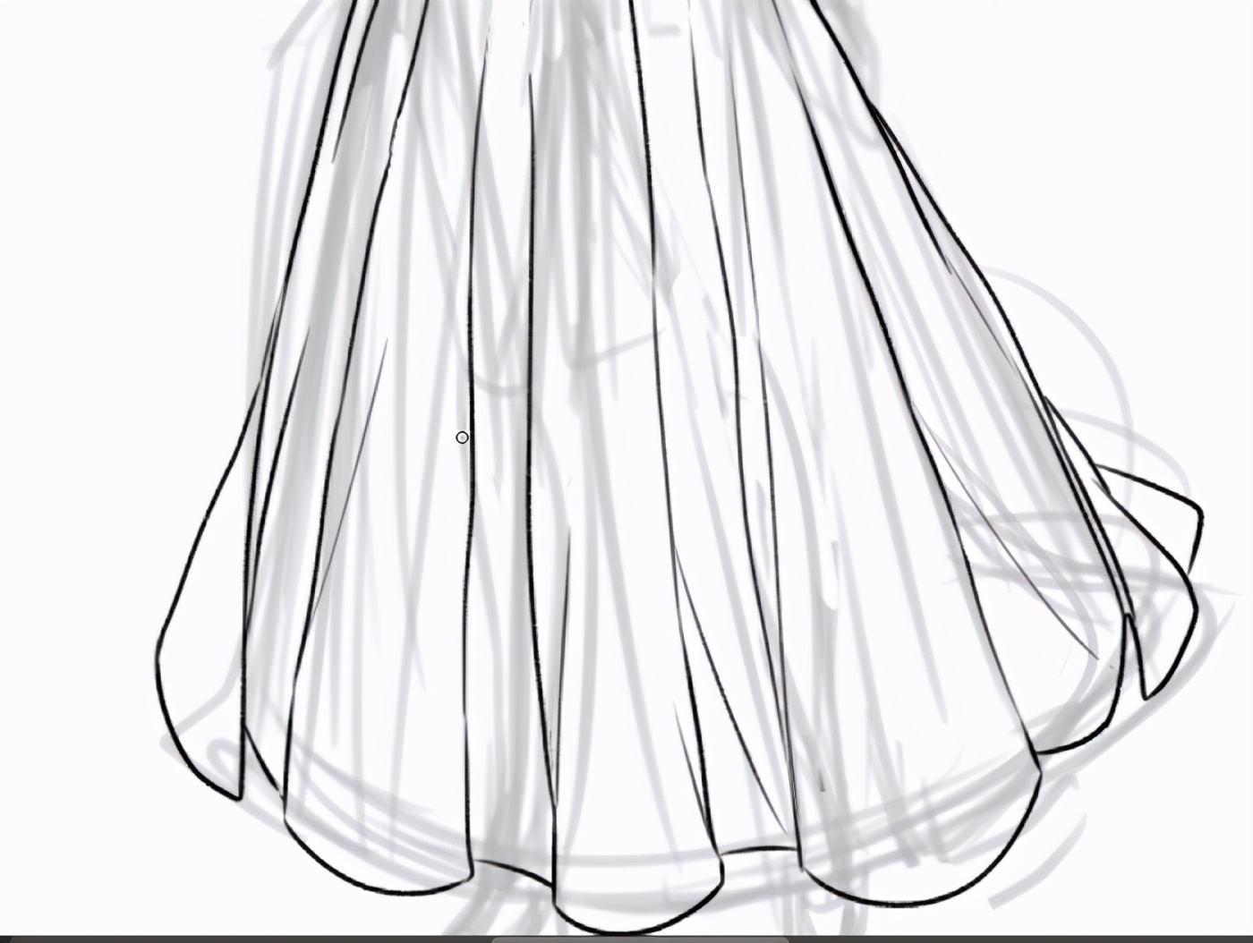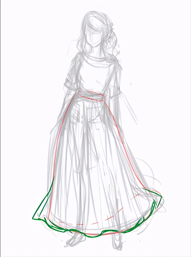 在下面画的时候把裙子的下摆画成草图的话结构就容易抓住了。