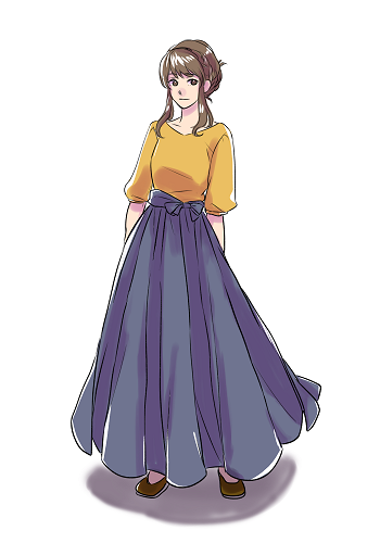 另外,(从下面看)构图中的裙子如果意识到后侧的下摆,就能表现出深度。