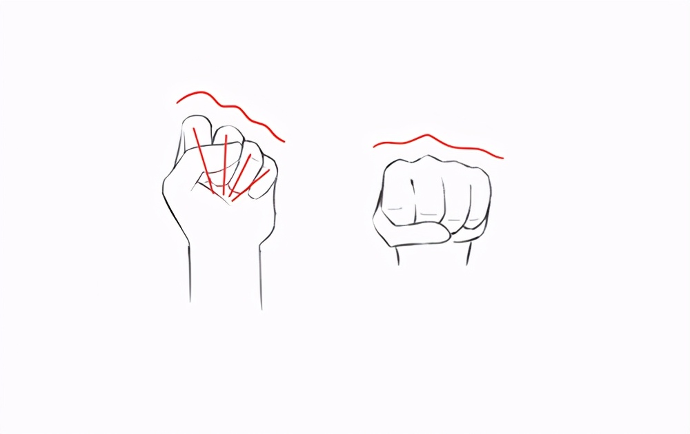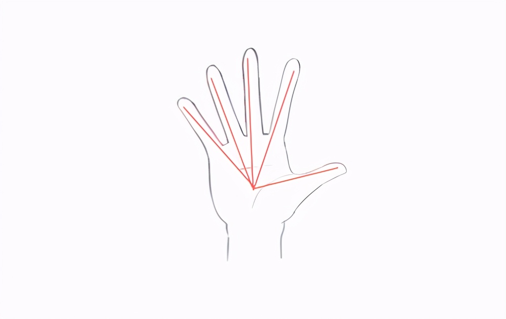 绘制手时最常见的操作之一是将手指根部与手腕平行绘制。