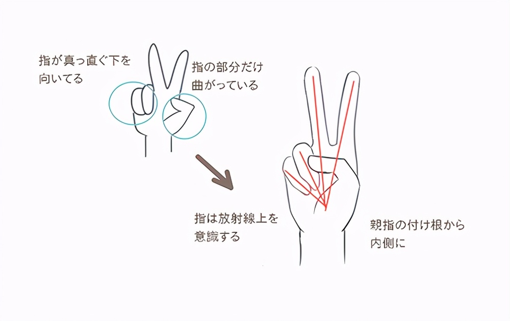 因此,即使是剪刀手,也要注意弯曲和伸展手指的方向。
