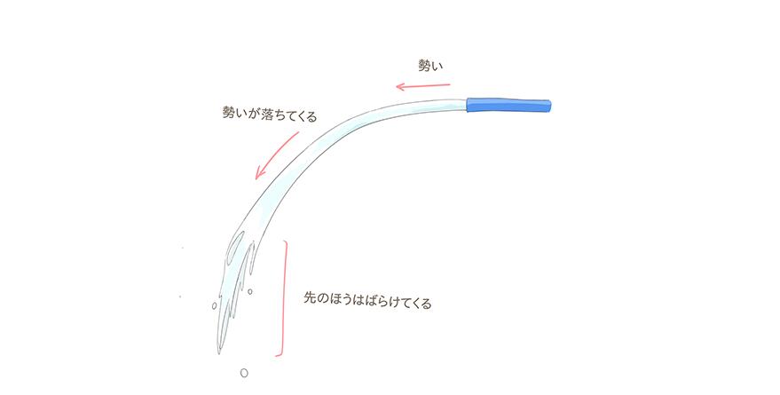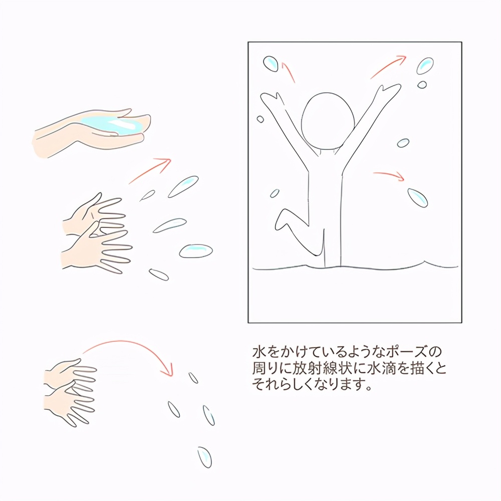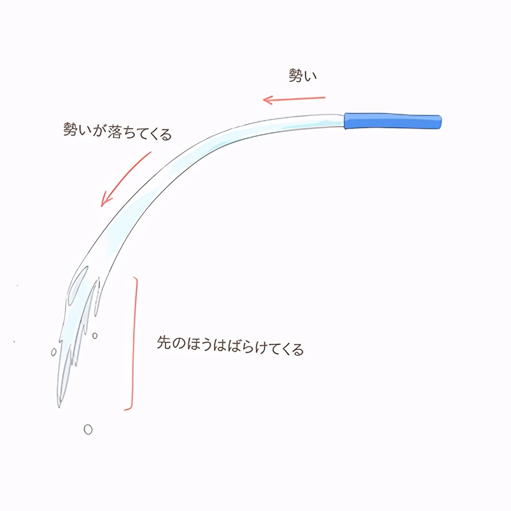 这时候最好把水滴画成抛物线的形状,想象水会沿着抛物线飞。