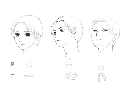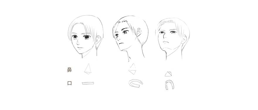 眼睛的高度根据正面、倾斜和 fukan 三个角度而变化,因此在绘制草图时要注意这一点。