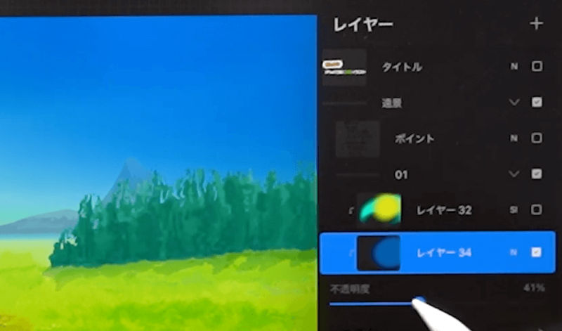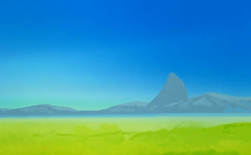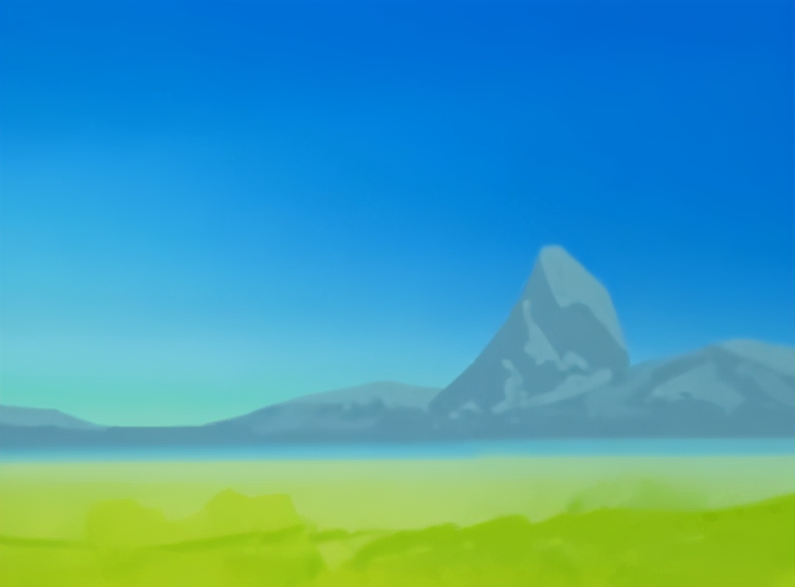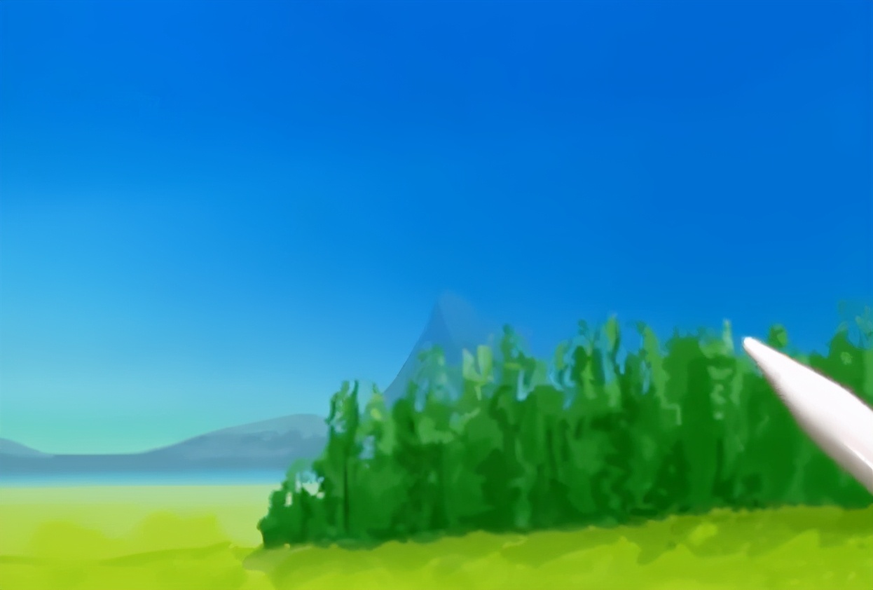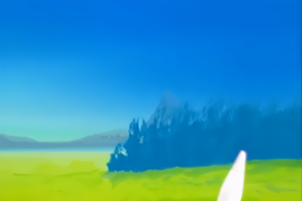 用气刷把变成空气颜色的蓝色放在上面了。不只是把蓝色放在整体上,把天空的颜色和草坪的颜色上下放在一起也可以作为背景来适应。