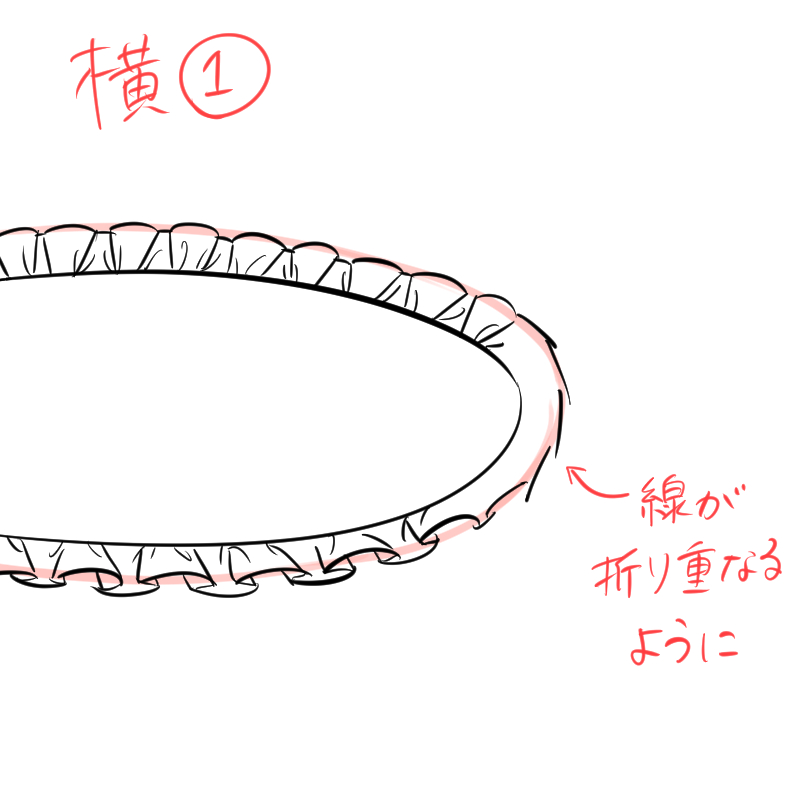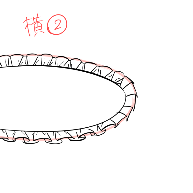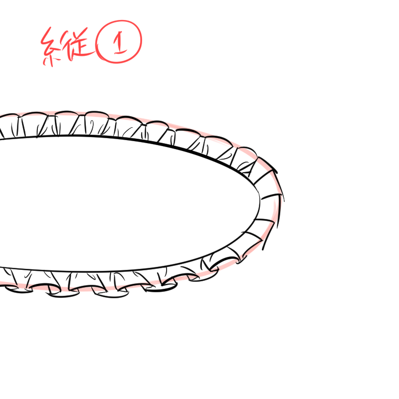 如果你想把它附加到一个圆圈上,你需要画一个从侧面看的褶边。