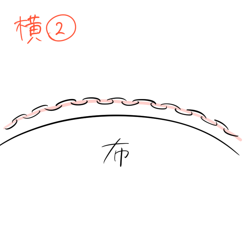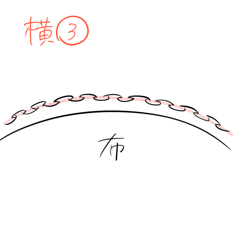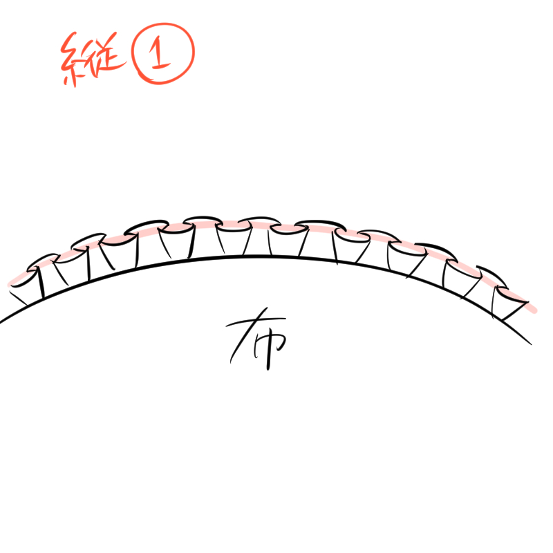 接下来,沿着水平线的边缘画一条垂直线,使其向织物方向挤压。