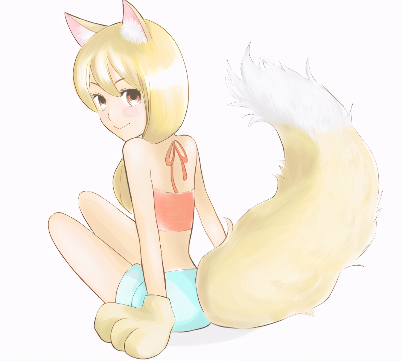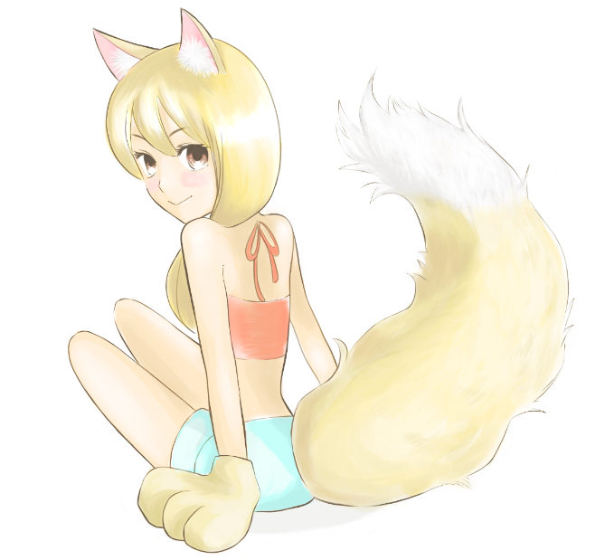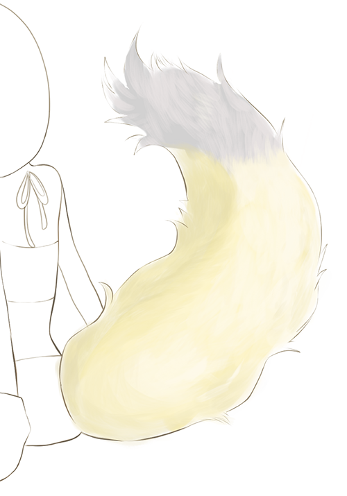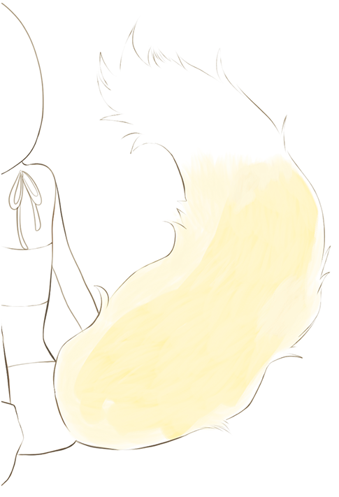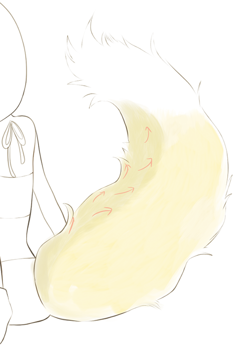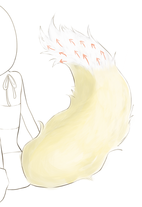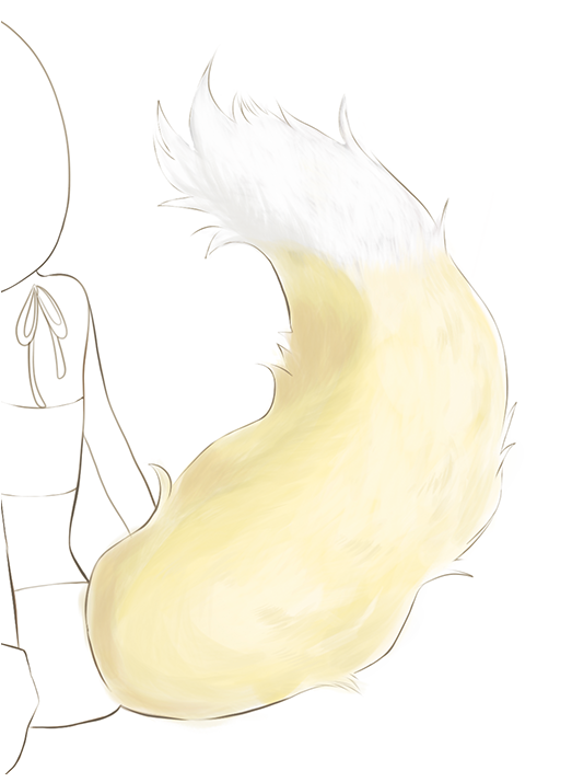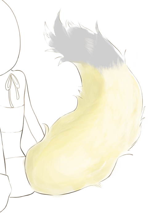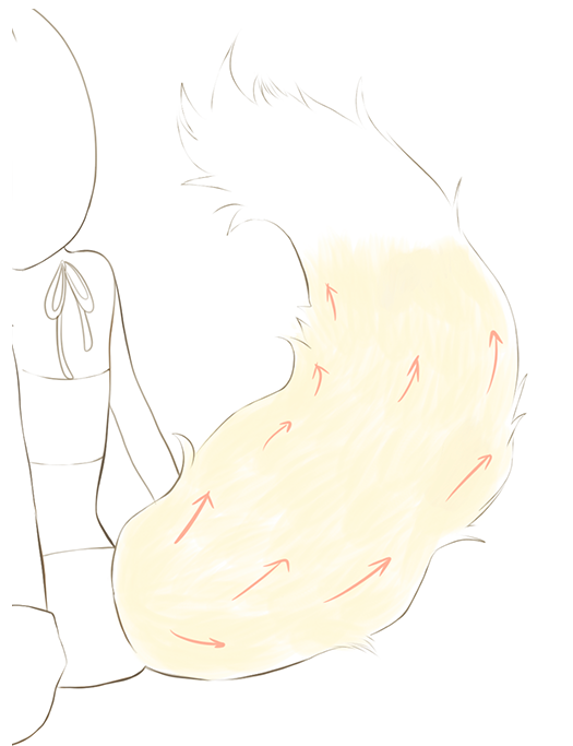 一旦你可以画出你的耳朵,就该画你的尾巴了。和耳朵一样,考虑到头发的流动和发束的感觉来画尾巴。