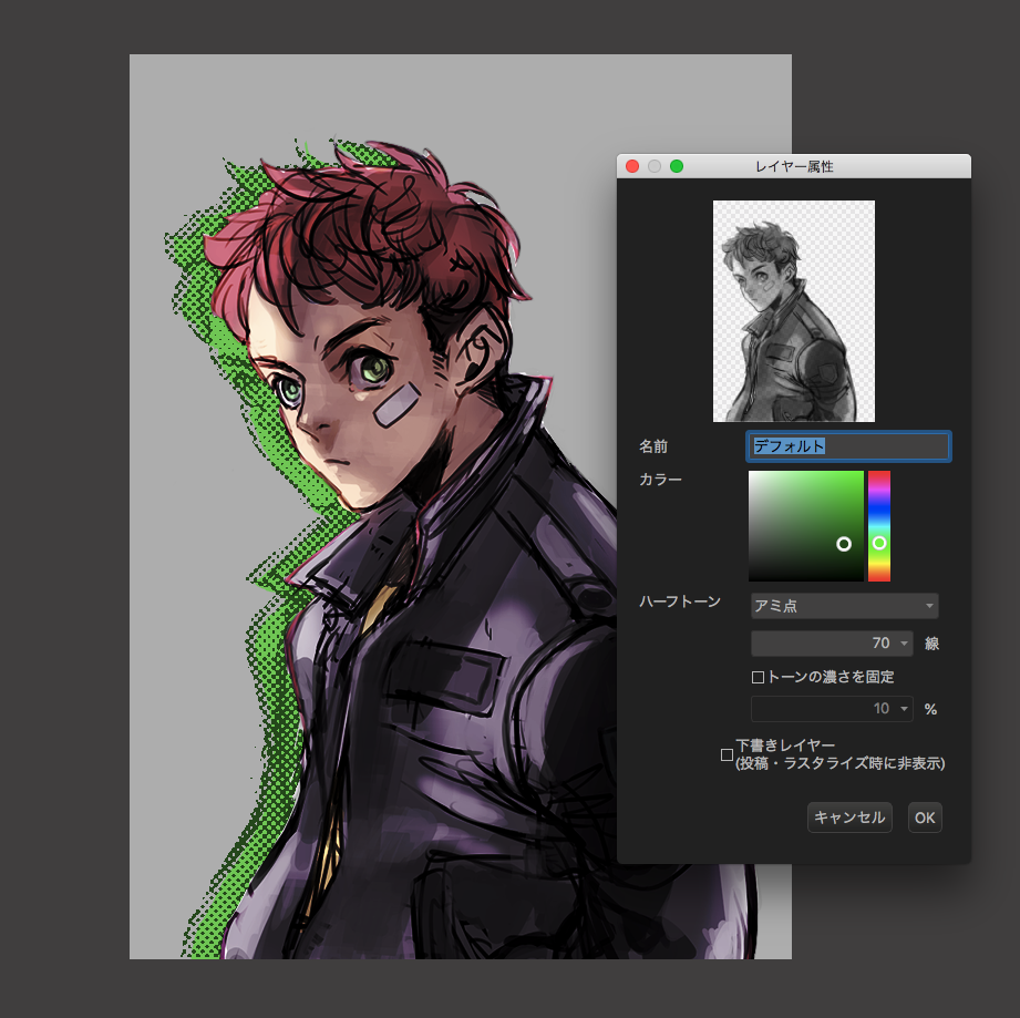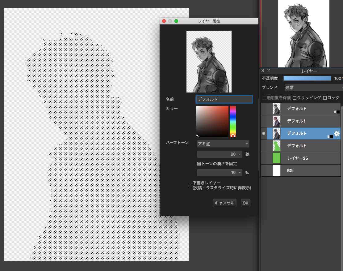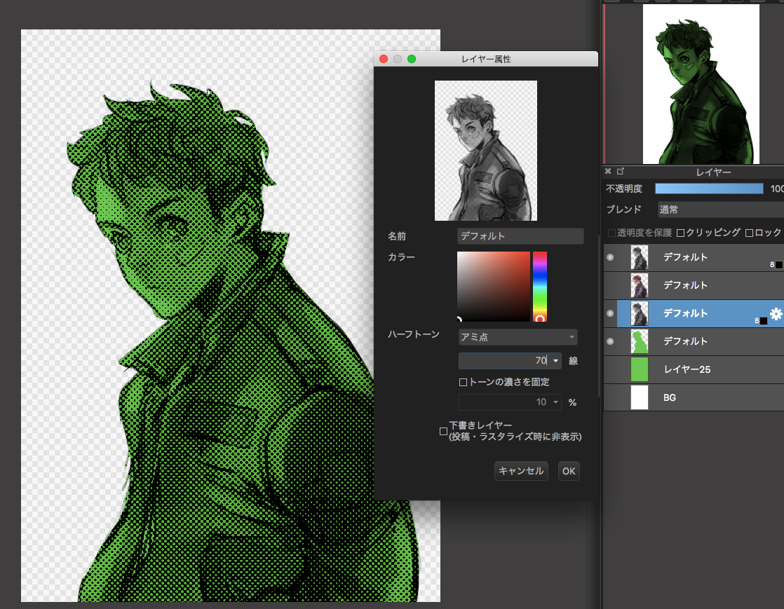从图层旁边的齿轮标记打开“图层属性面板”,并为半色调选择“Ami点”。
