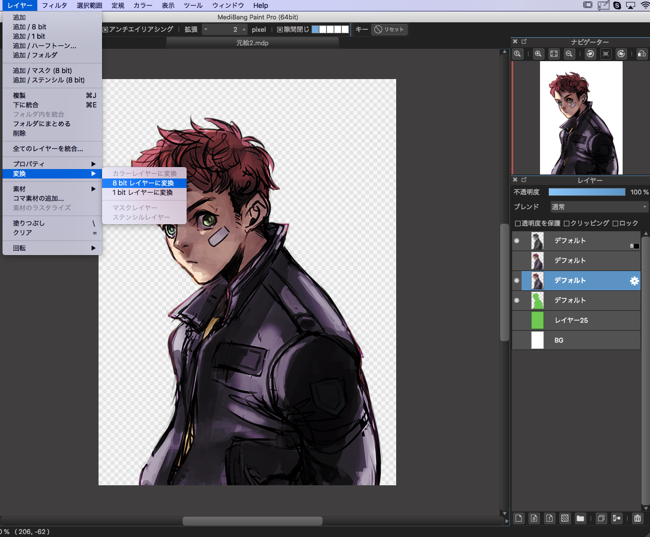通过选择“图层”>“转换”>“转换为 8 位图层”将图层转换为 8 位图层。