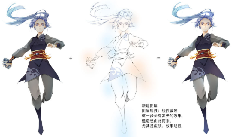 图层属性:线性减淡这一步会有发光的效果。通透感由此而来。
