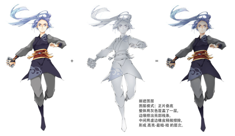 图层模式:正片叠底整体用灰色覆盖了一层,边缘擦出亮部线条,中间用虚边橡皮稍做擦除,形成高亮-最暗-暗的层次。