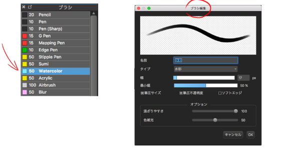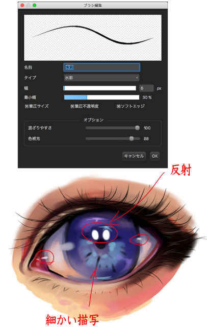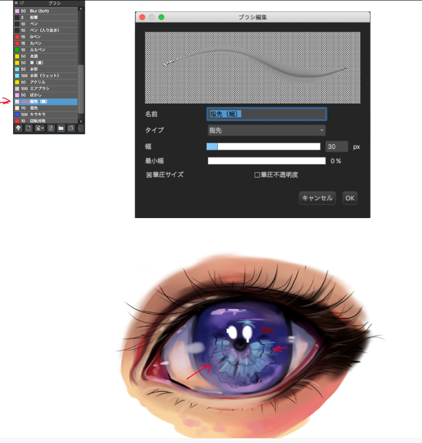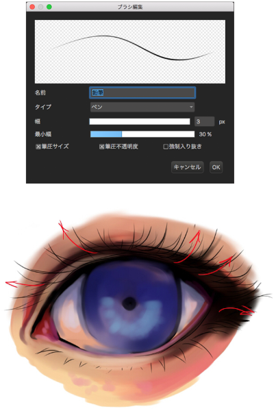 睫毛画法。请双击铅笔进行以下设定。用细描画。