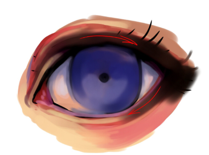 请把同样的水彩刷做成软边。涂在眼睛里吧。