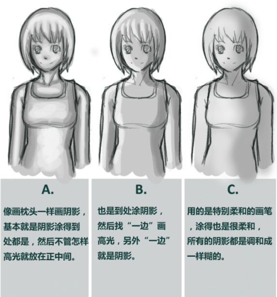 首先你在下面这几张图里,看到你自己画阴影的方式了么?
