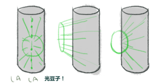试着不要从科学的角度来考虑,光源呢就是一堆的光子/豆子喷射出来。