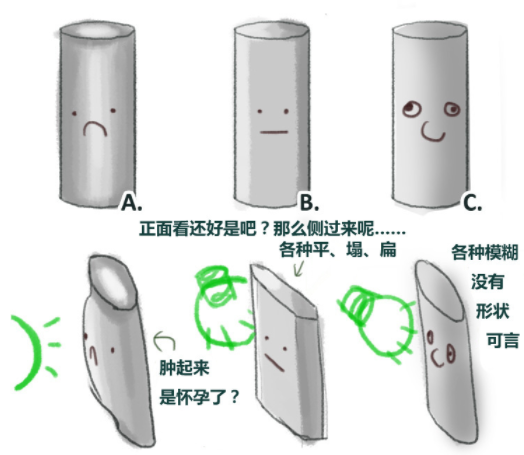 OMG!这样会有什么问题﹖这些阴影的画法都是很典型只遵循单一的规则没有考虑真实的光影效果T_T。所以我们来试试讲讲如何让你的大脑变得“真实”起来。