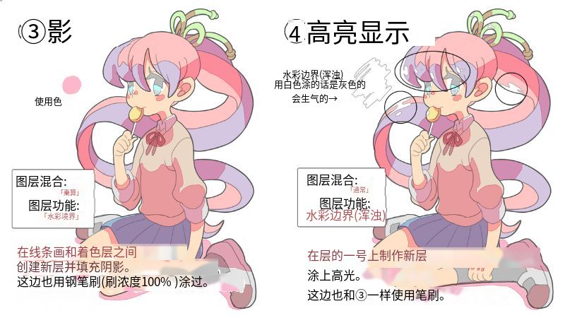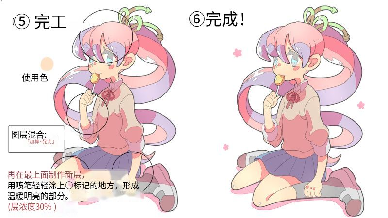 无需更改每个部分的阴影颜色。用相同的颜色作画,画面就会有统一感。