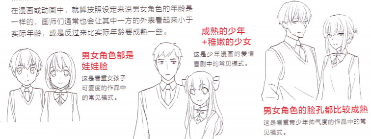 在漫画或动画中,就算按照设定来说男女角色的年龄是一样的,画师们通常也会让其中-方的外表看起来小于实际年龄,或是反过来比实际年龄要成熟一些。