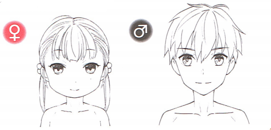 少女脸部比较圆润,男性比较直线型