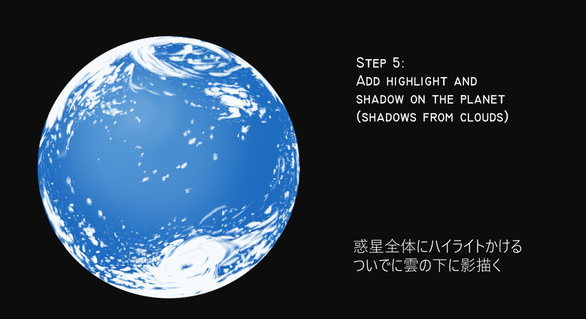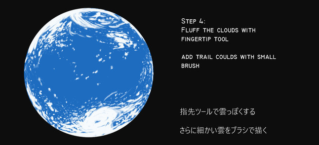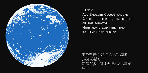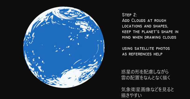 在粗糙的位置和形状上添加云,在绘制云时记住行星的形状