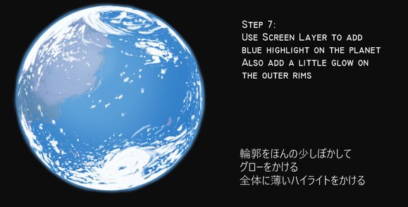 使用屏幕层添加地球上的蓝色亮点也在外缘增加一点光亮