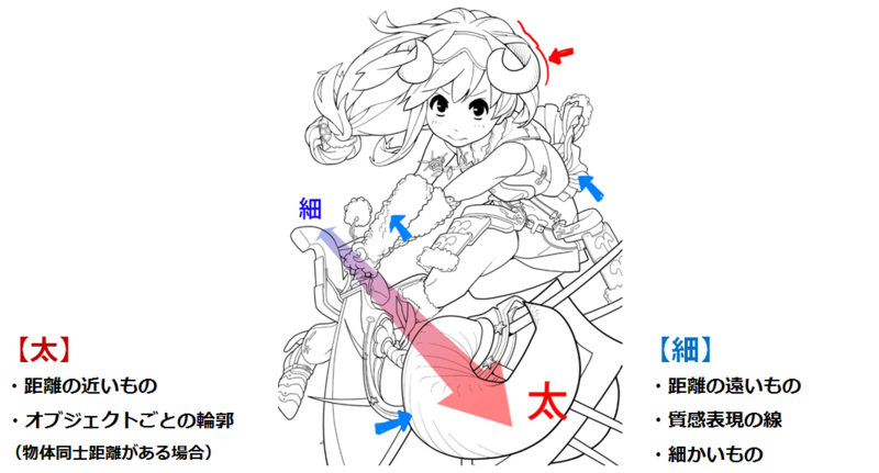 粗线:用来表达距离我们更近(即前方)的物体,以及画面中人物和物体的轮廓。