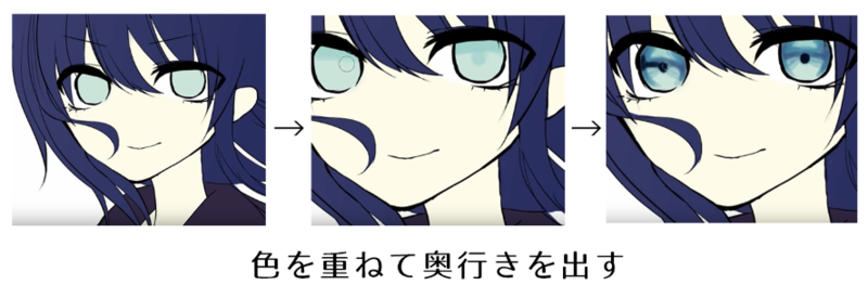 创建一个新层,用深色填充眼睛的顶部,用乘法层填充底部的浅色。如果创建一个新图层并使用接近白色的颜色绘制折痕以锐化瞳孔的轮廓,则深度将变得清晰。