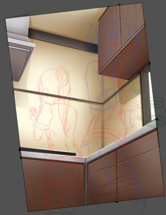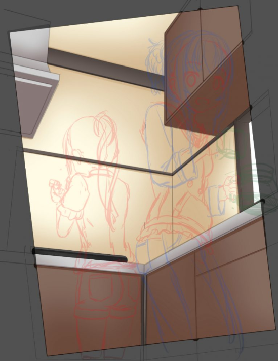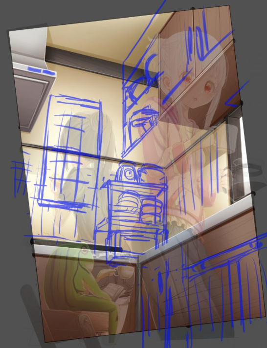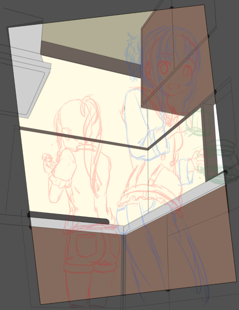 在草稿阶段,要考虑不要在天花板、架子、台子等物品的高度和纵深上出现过多奇怪的地方。