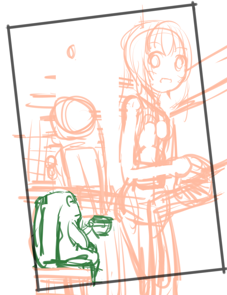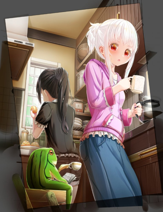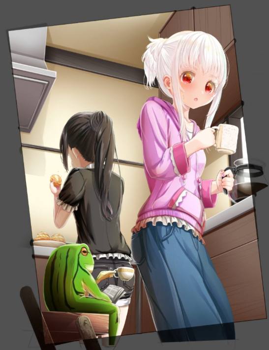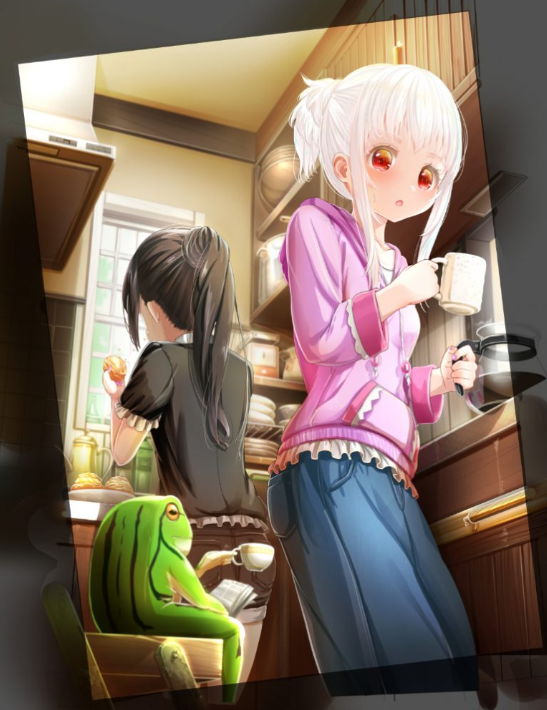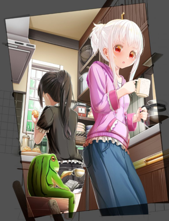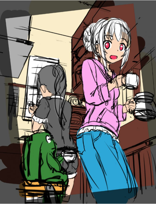 在以角色为主的画的情况下,如果背景过于逼真或画得太细,角色有时会输,所以要注意平衡。