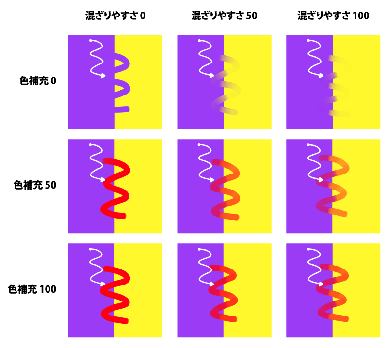 通过增加这种混合容易度的值,您可以控制混合基础颜色和画笔颜色的容易度。