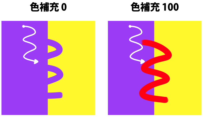 如果在补色次数为0时从背景颜色画一条线,背景颜色将被扩展。