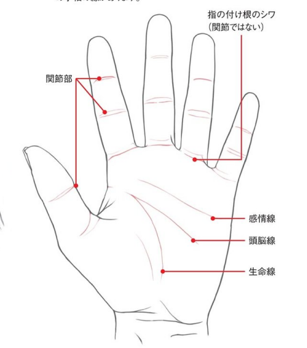 手相等的细纹、关节、肉球等,手掌中有很多构成要素,抓住这个特征就能很好地表现出来。