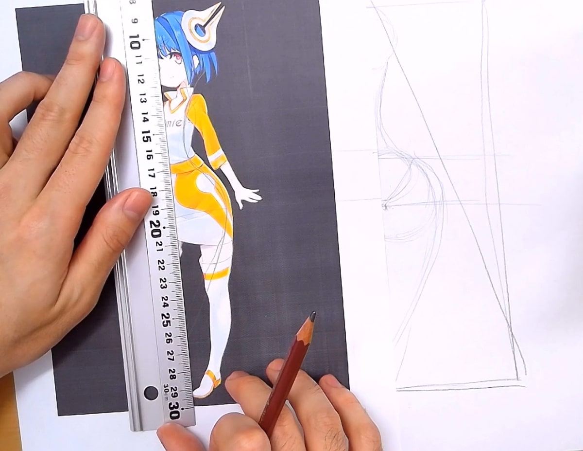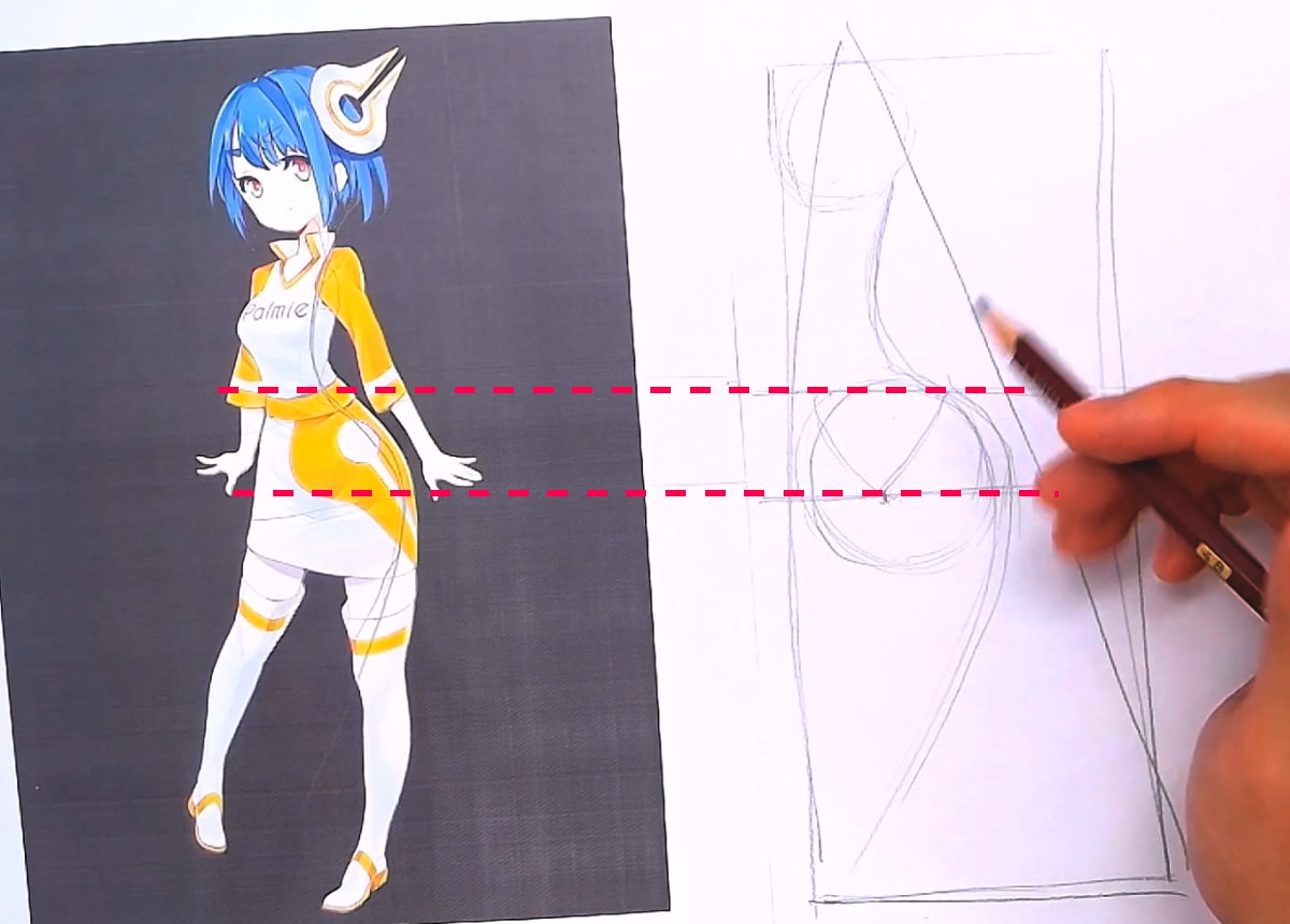 将样品彼此相邻排列并检查零件的位置。首先是腰部的位置。