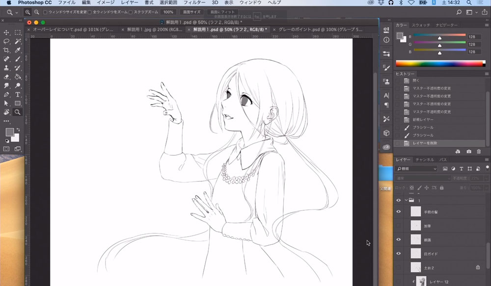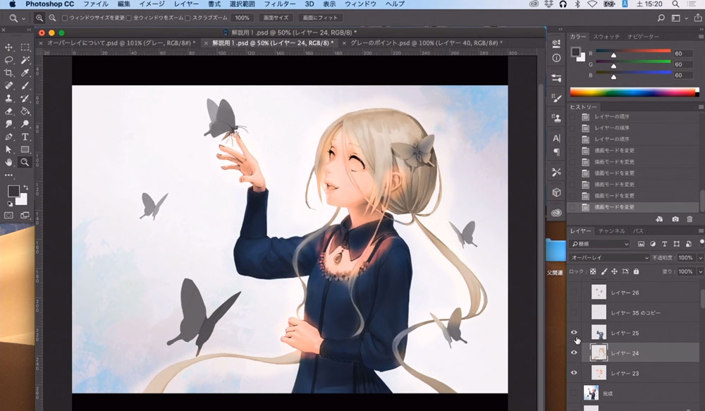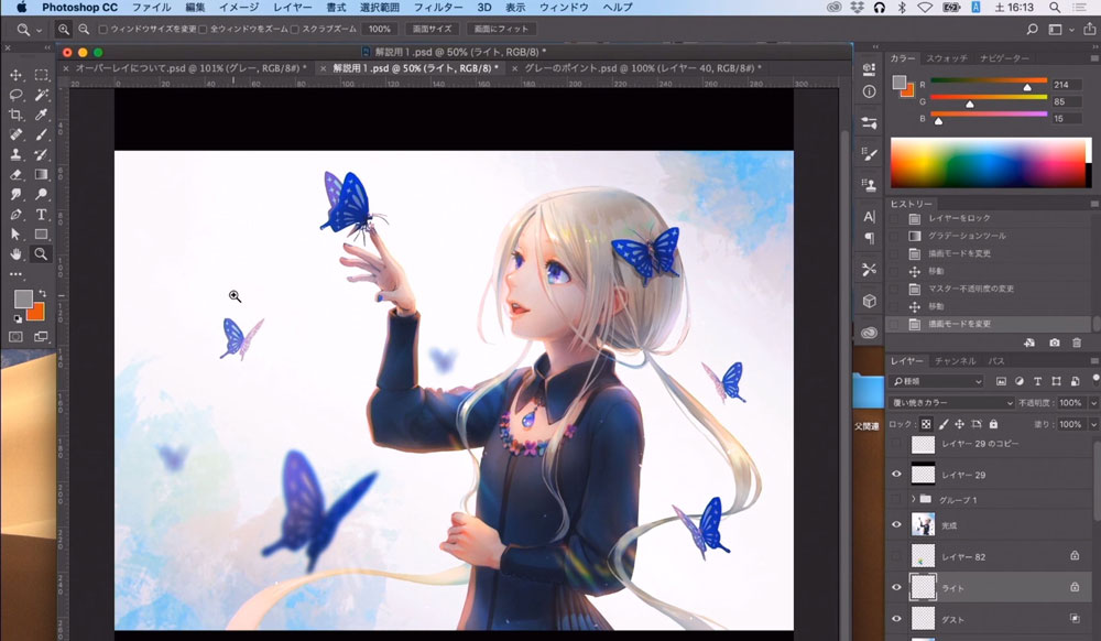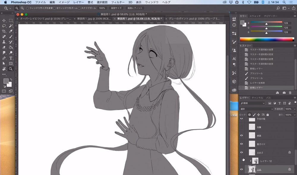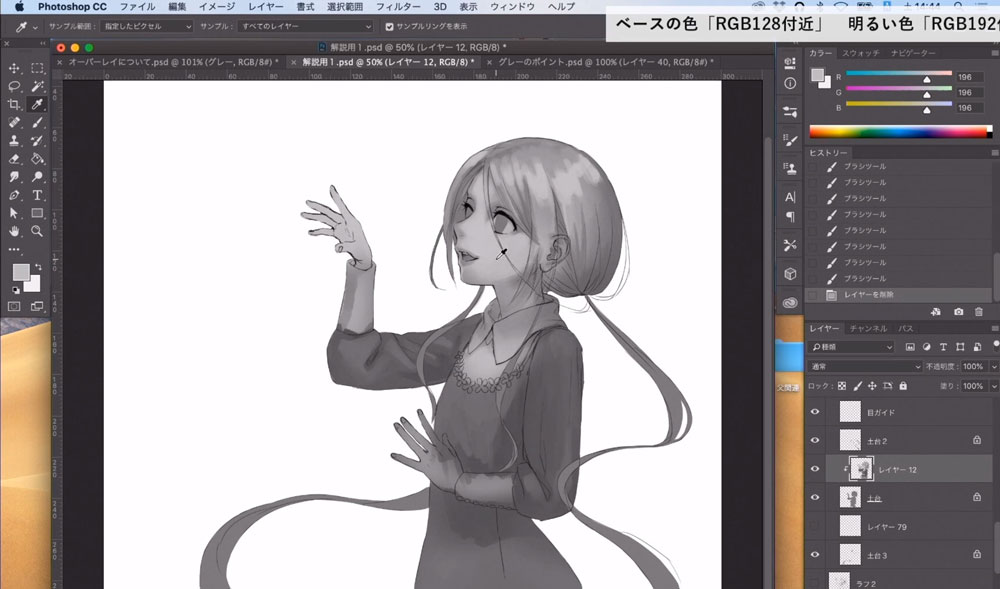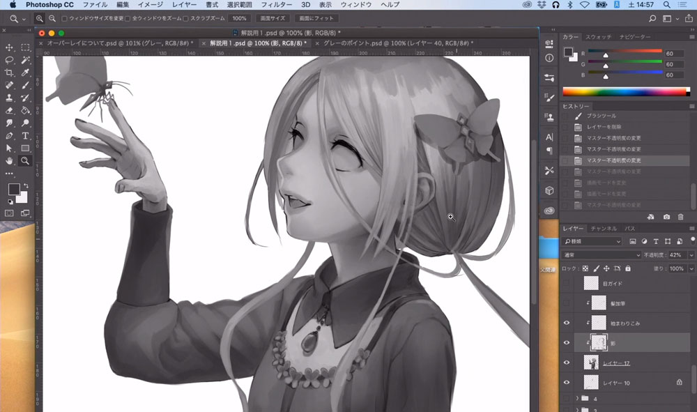 这一次,是使用“叠加”效果的灰色绘画方法。如前所述,“叠加”具有“亮部分为屏幕,暗部分为基于中性色的乘法”的特征。