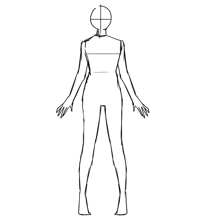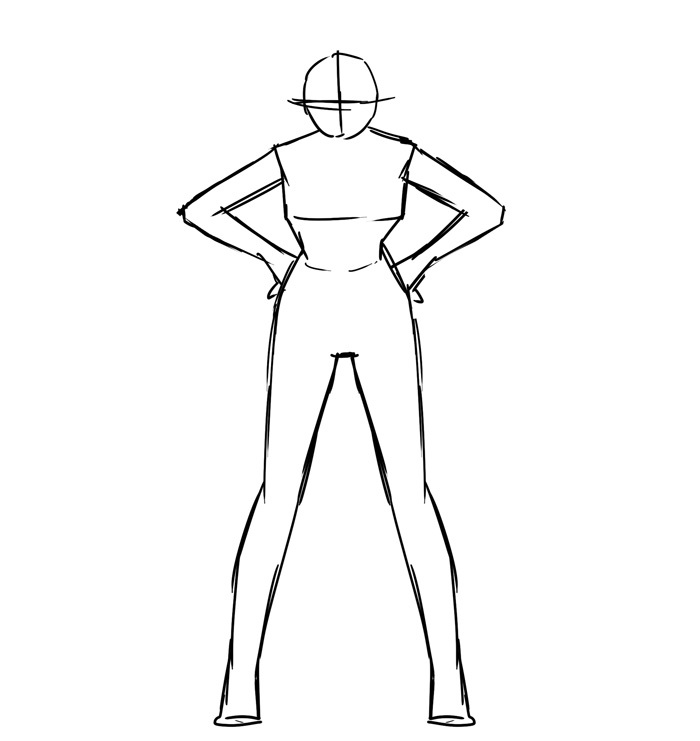 首先,画出基本的正面全身和站立姿势。生活取决于你。这一次,我让它接近现实生活。