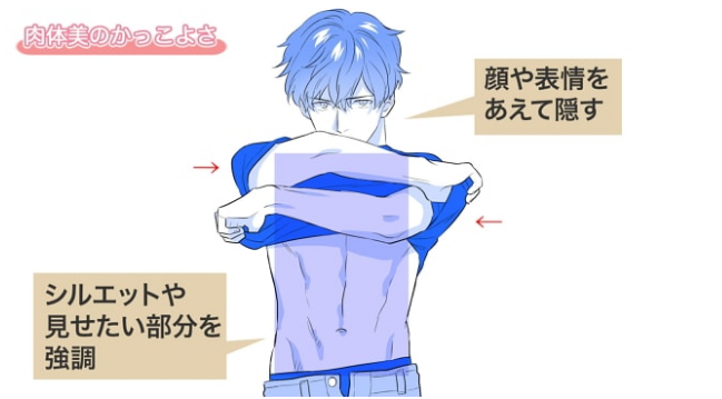例如,“童颜可爱,身体却出乎意料地健壮“想要展现这样的反差的情况下,脸部以照相机的视角关注表情,身体的人能看到手和手臂的肌肉肌肉的肌肉僵硬的感觉,以及没有无用脂肪的身体,肘部和膝盖向外伸出摆出那样的姿势。