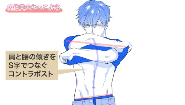 另外,这也是通过将扭力放在身体上,使肩膀有深度,展现出肩宽和立体感的效果。