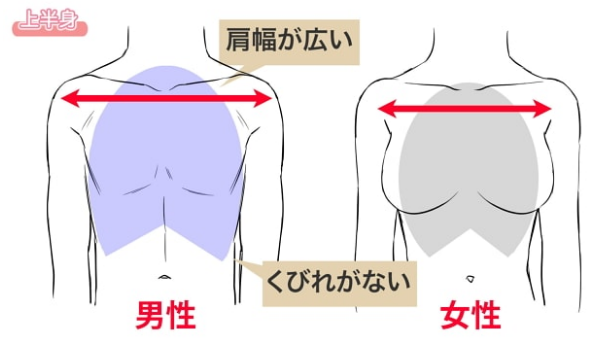 男性上半身的特点是肩膀比女性宽。