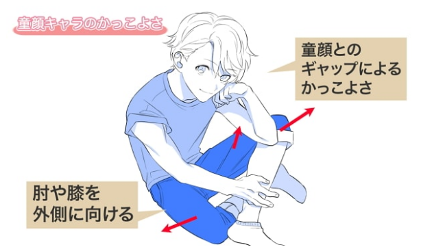 通过做出脚的组合方式,以及怎样体重坐着的变化,可以制作出表示角色各自性格和个性的姿势,所以可以配合想要展现的“帅气”,考虑一下那个角色会做什么样的坐姿来描绘一下比较好吧。
