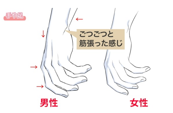 另外,男性的皮下脂肪比女性少,所以手脚的肌肉往往比较粗犷。